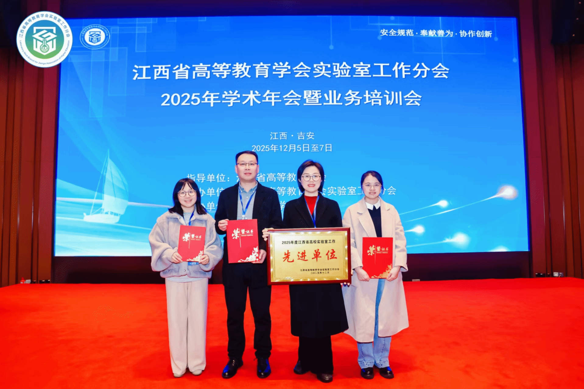 12月5日至7日,2025年江西省高等教育学会实验室工作分会学术年会暨业务培训会在井冈山大学召开。会上表彰了2025年度实验室与资产管理工作先进单位和个人,学校凭借实验室与资产管理的良好成果,获评“先进单位”,胡志红荣获“特别贡献奖”,杨娇、孙皓荣获“先进个人”称号。